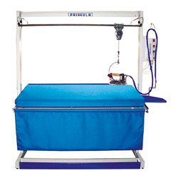 Bügelfläche 120 x 70 cm, elektrisch beheizt, durch Thermostat geregelt und, serienmäßig, mit eingebauter Absaugung .